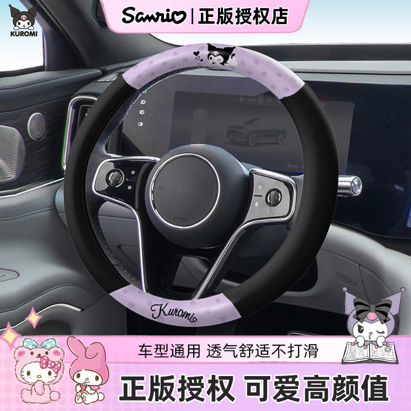 库洛米卡通汽车方向盘套2026新款四季通用D型把套女可爱防滑透气
