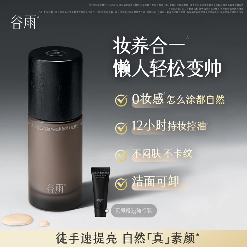 谷雨男士素颜霜修颜遮瑕bb霜防水防汗提亮粉底液自然不假白懒人霜