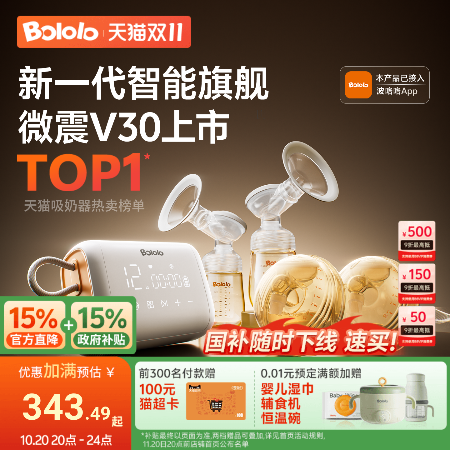 波咯咯双边电动吸奶器微震按摩母乳全自动免手扶挤奶器吸乳器静音