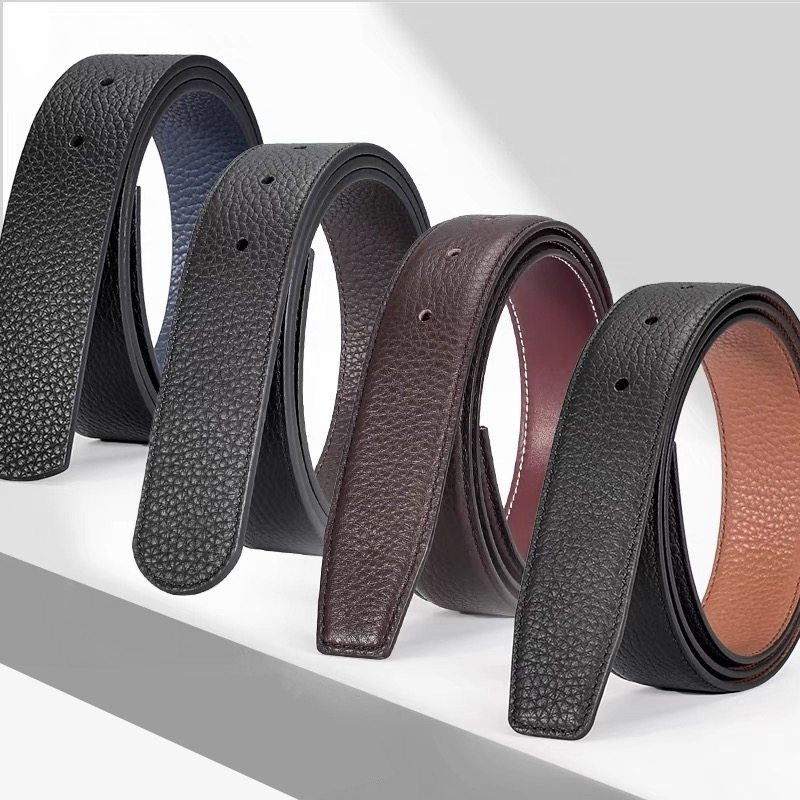 双面不带头真皮无h扣皮带男头层牛皮荔枝纹无头纯带身裤腰带条903