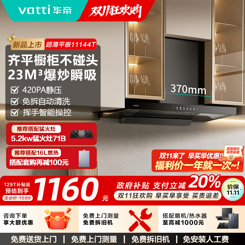 国补华帝抽油烟机套装X5+71B家用厨房燃气灶套餐自动洗官方旗舰店