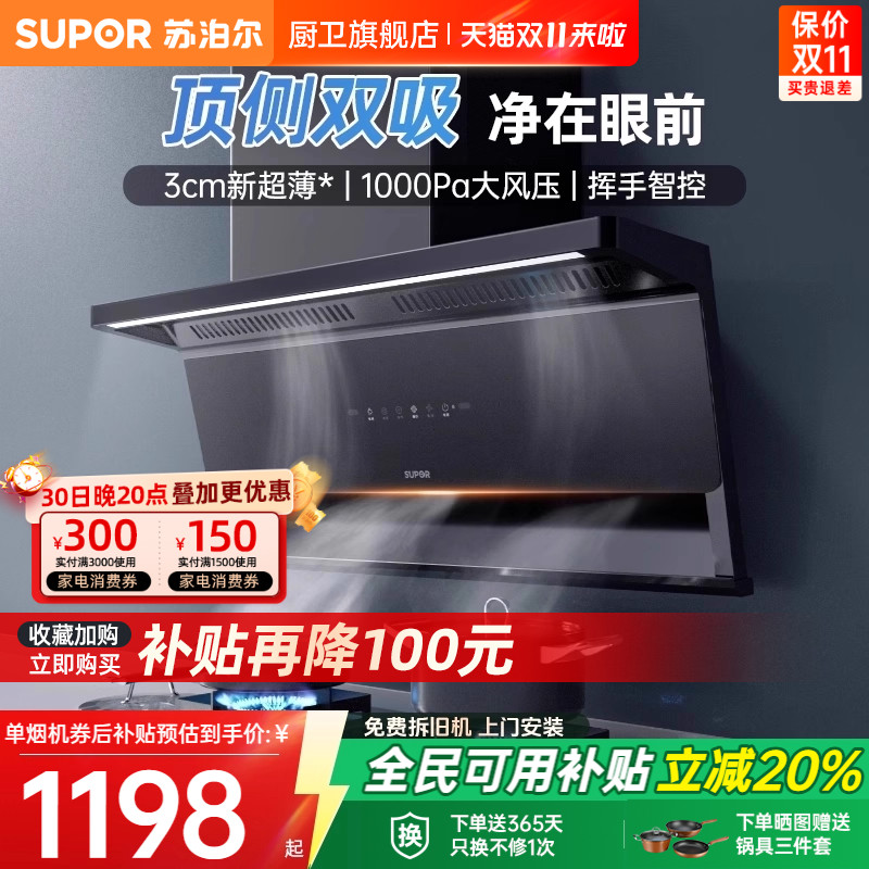 苏泊尔抽油烟机套装家用厨房吸油烟MI30超薄大吸力顶侧双吸吸油机