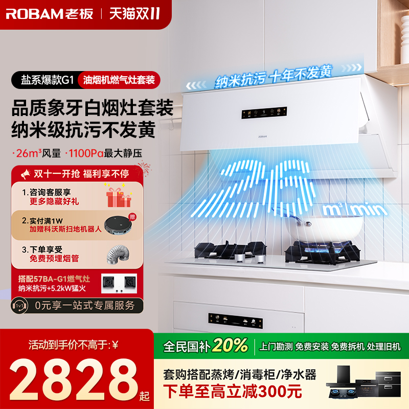 【老板油烟机套装】盐系高颜值G1抽吸油烟机厨房烟灶套装官方旗舰