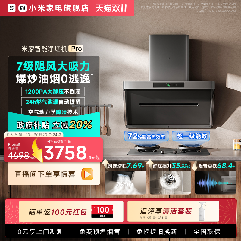 [年度新品]小米米家净烟机pro大吸力油烟机套装家用燃气灶灶具