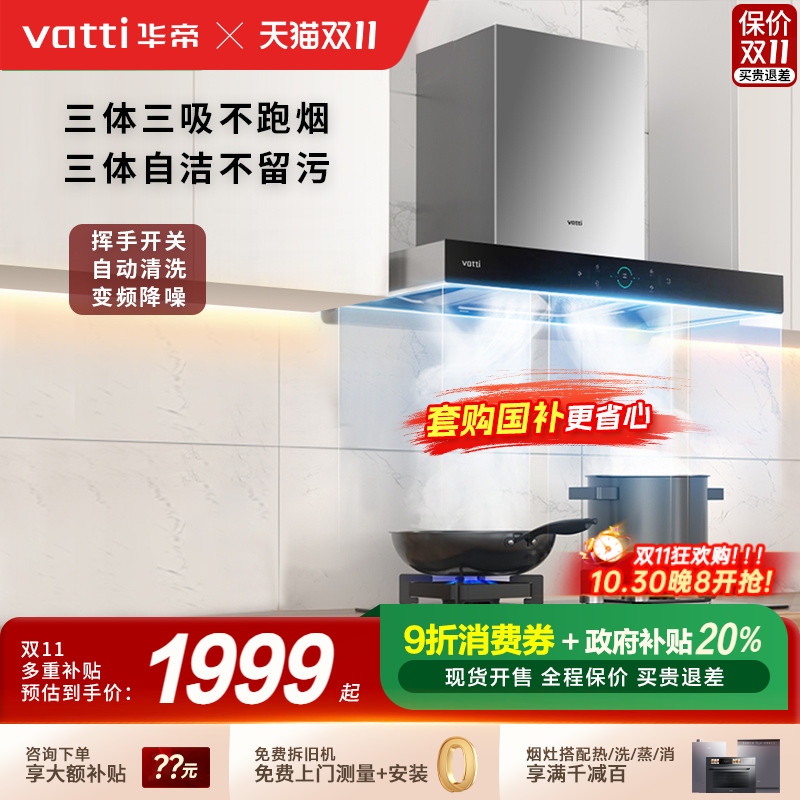 华帝S7三腔顶吸抽油烟机套装欧式家用厨房大吸力自动洗官方旗舰店