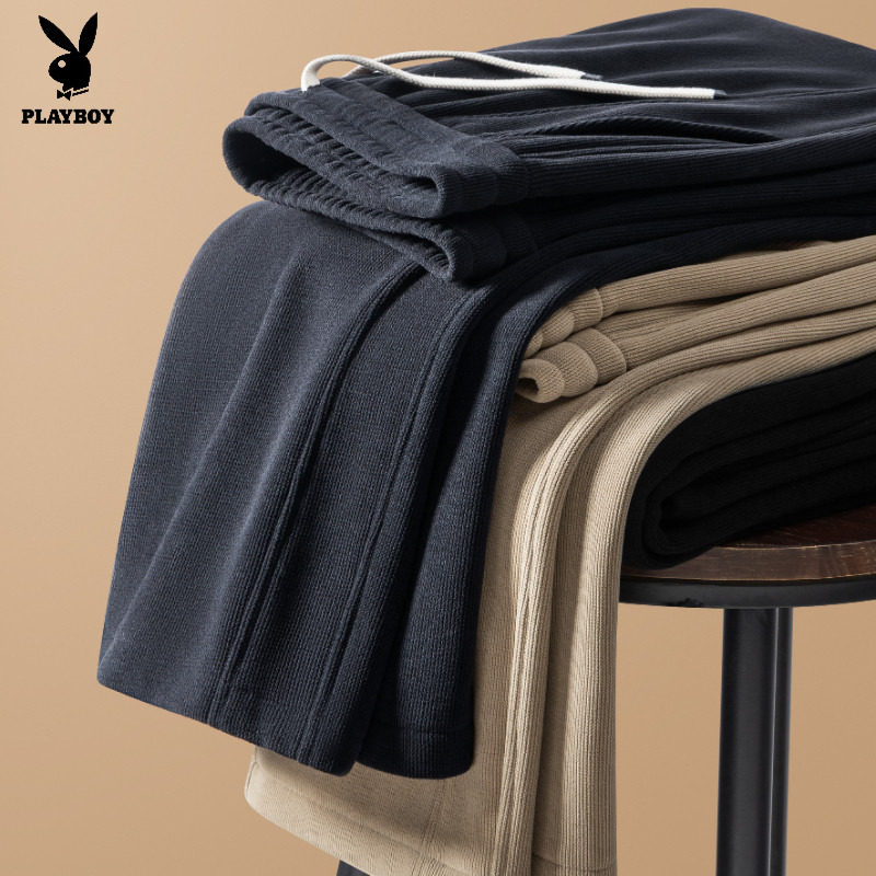 花花公子休闲裤男款冬季2025年加绒加厚阔腿直筒针织运动休闲卫裤