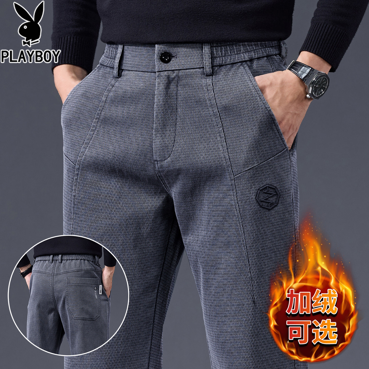 花花公子男士西裤秋冬季直筒宽松大码商务加绒厚款休闲长裤男弹力