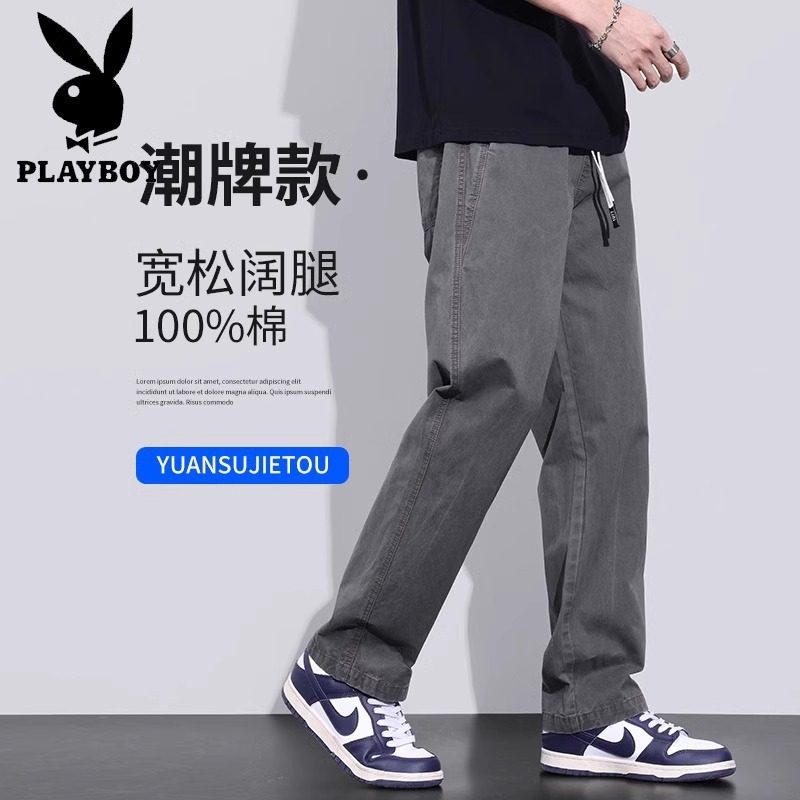 花花公子秋冬美式纯棉休闲宽松直筒运动阔腿工装加绒厚款长裤子男