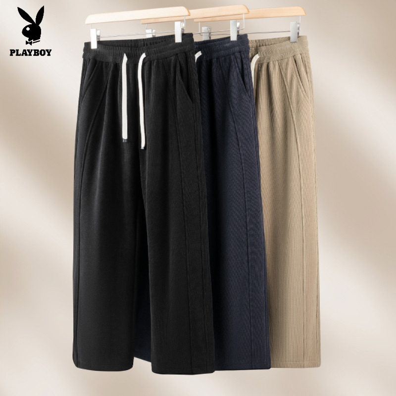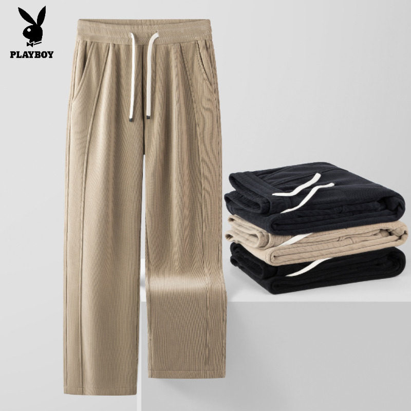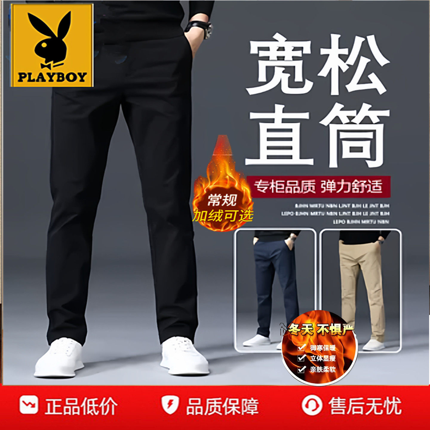 花花公子休闲裤男士秋冬季新款宽松直筒商务纯棉长裤子男加绒可选