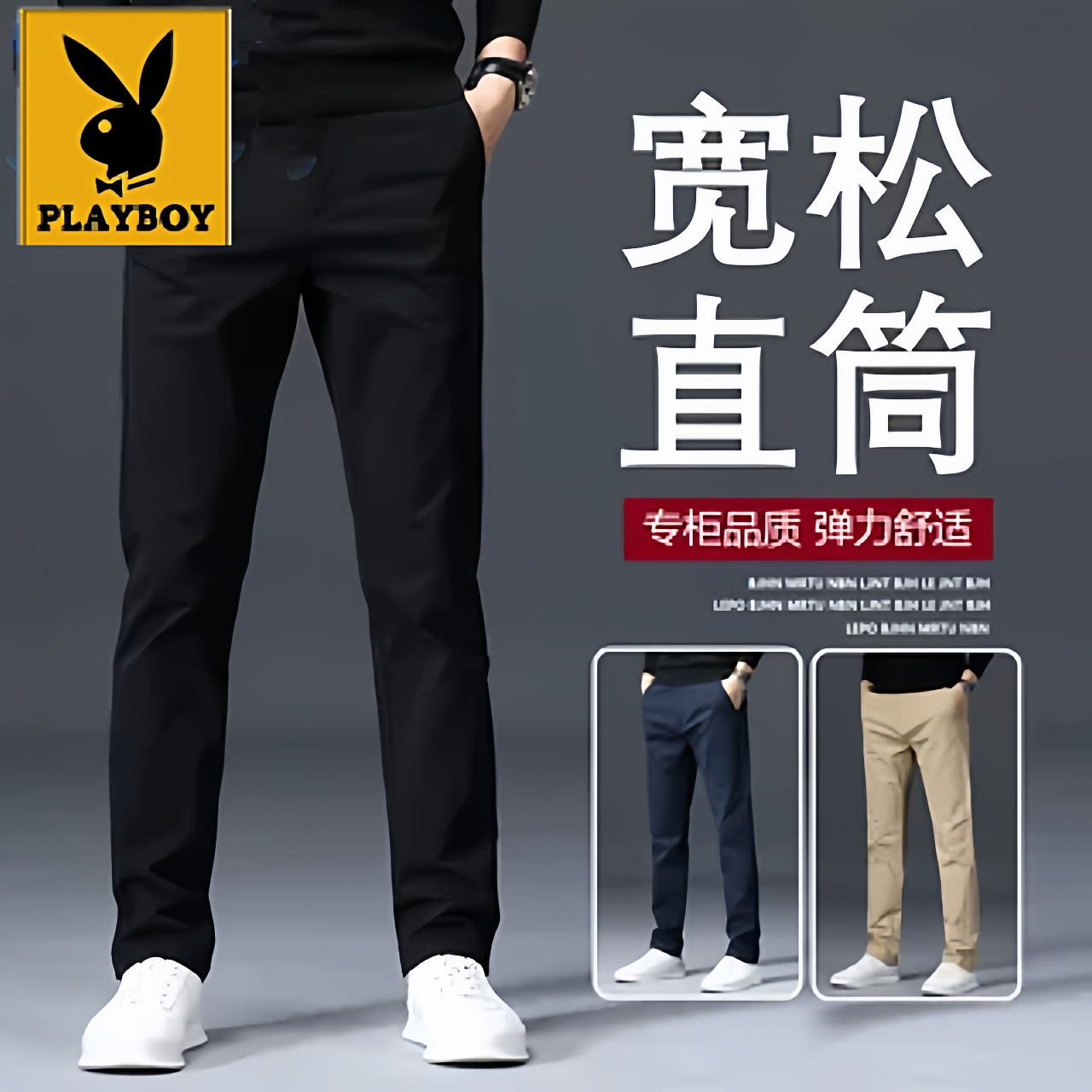 花花公子休闲裤男士2025新款夏季薄款直筒宽松中年商务西装长裤子