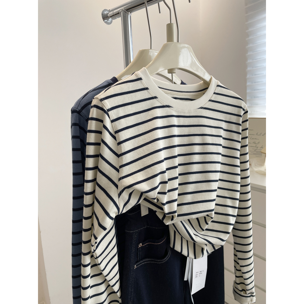 好质感~韩系经典圆领条纹衫长袖t女!2025春款百搭显瘦上衣打底衫