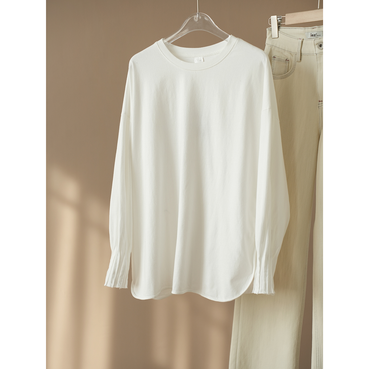 - 白色长袖体恤女