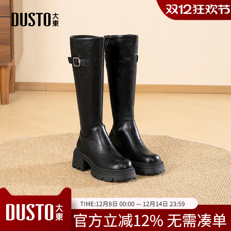 大东dd长筒靴女2025新款秋冬长靴厚底骑士靴美拉德复古中筒女靴子