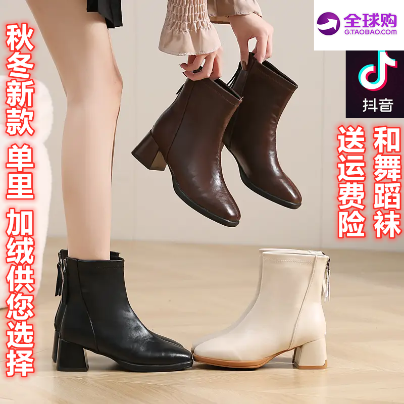 真皮马丁靴女短靴2025秋冬新款中筒靴粗跟单靴高跟靴子女士冬女靴