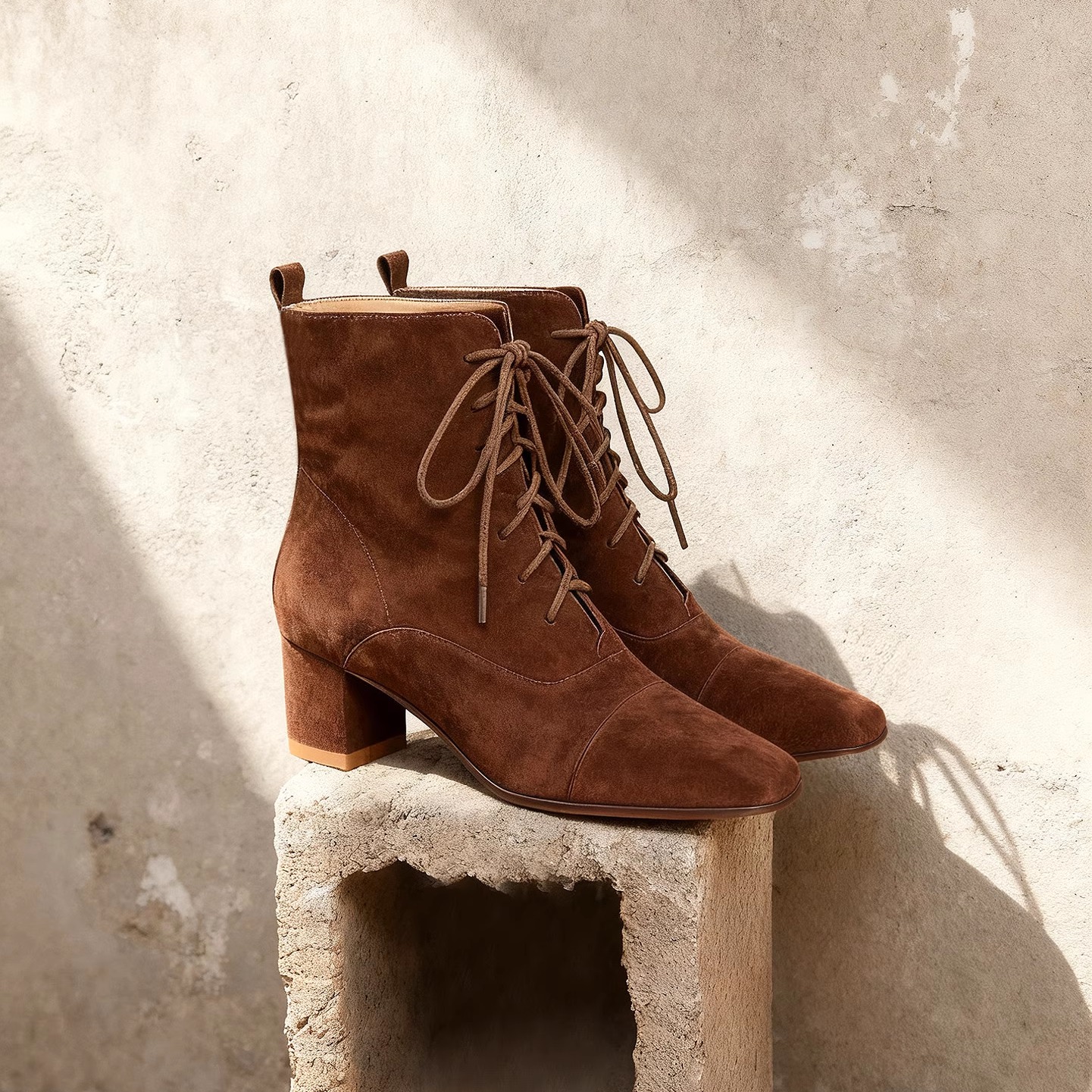 割草机老k 美拉德风复古系带中筒靴 侧拉短靴女靴子2025秋冬新款