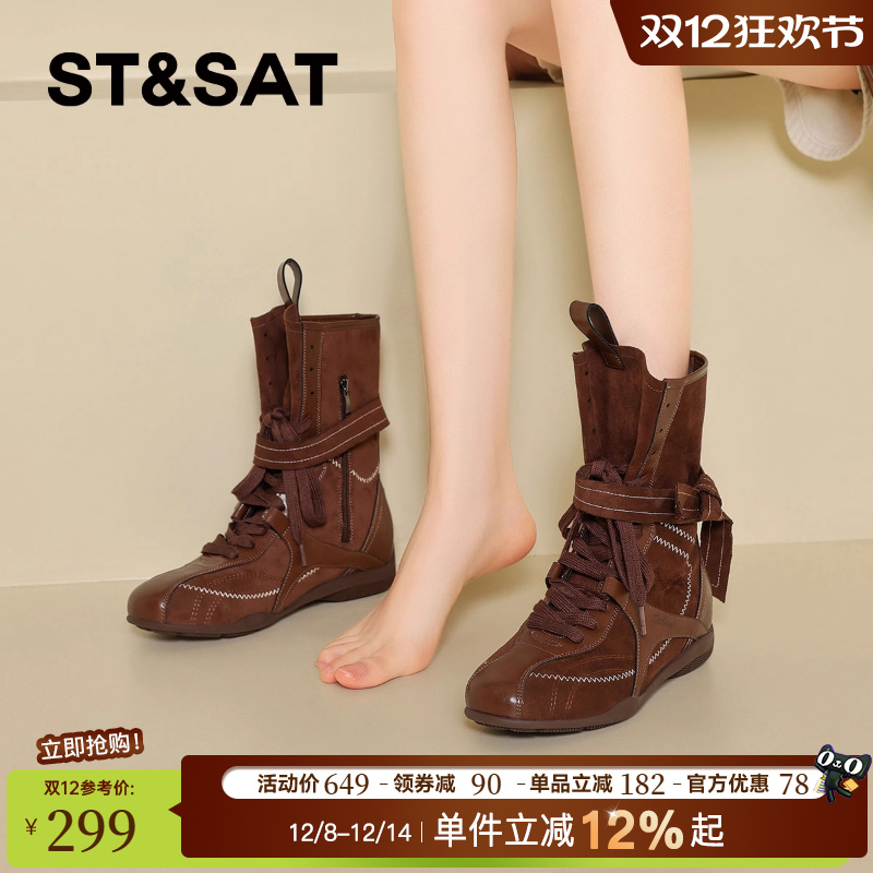 星期六2025新款厚底马丁靴女靴秋季中筒复古内增高短靴休闲拳击靴