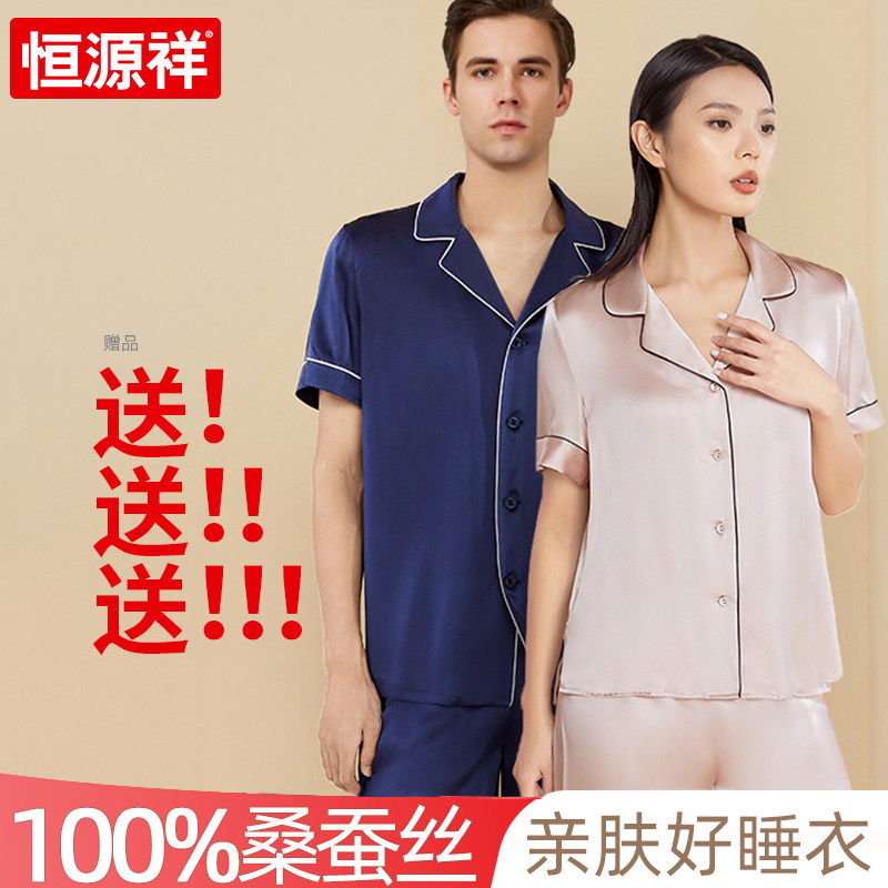 恒源祥真丝睡衣男女夏季短袖新款薄款桑蚕丝秋季绸情侣家居服套装