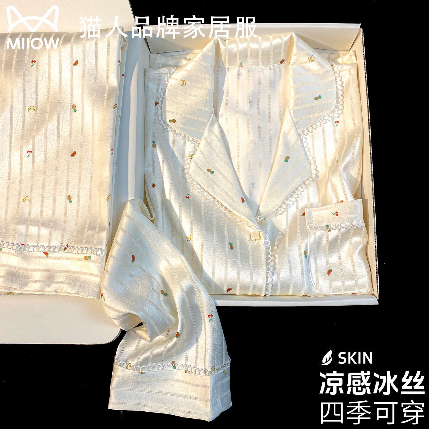 猫人冰丝睡衣女款夏季带胸垫2026新款薄款真丝绸家居服送闺蜜礼盒