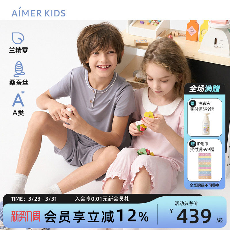 【桑蚕丝】儿童睡衣夏季七分套装男女童空调服婴儿衣服宝宝家居服