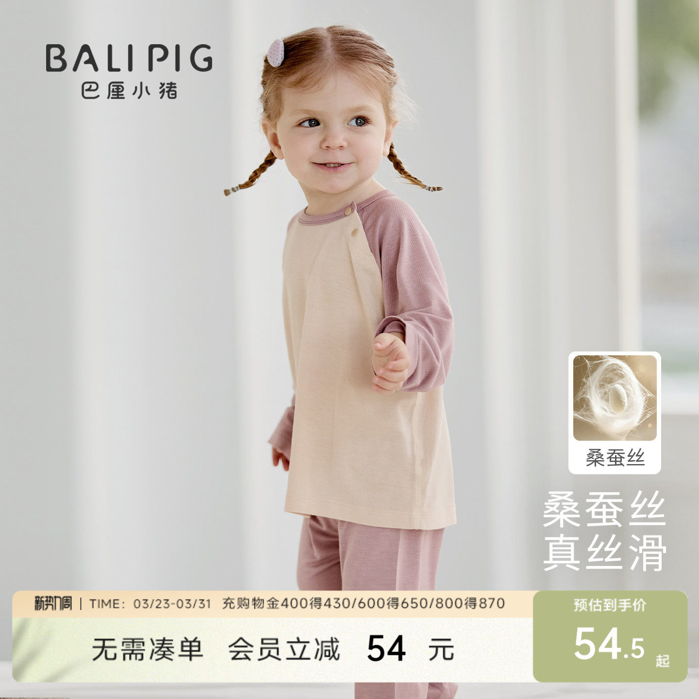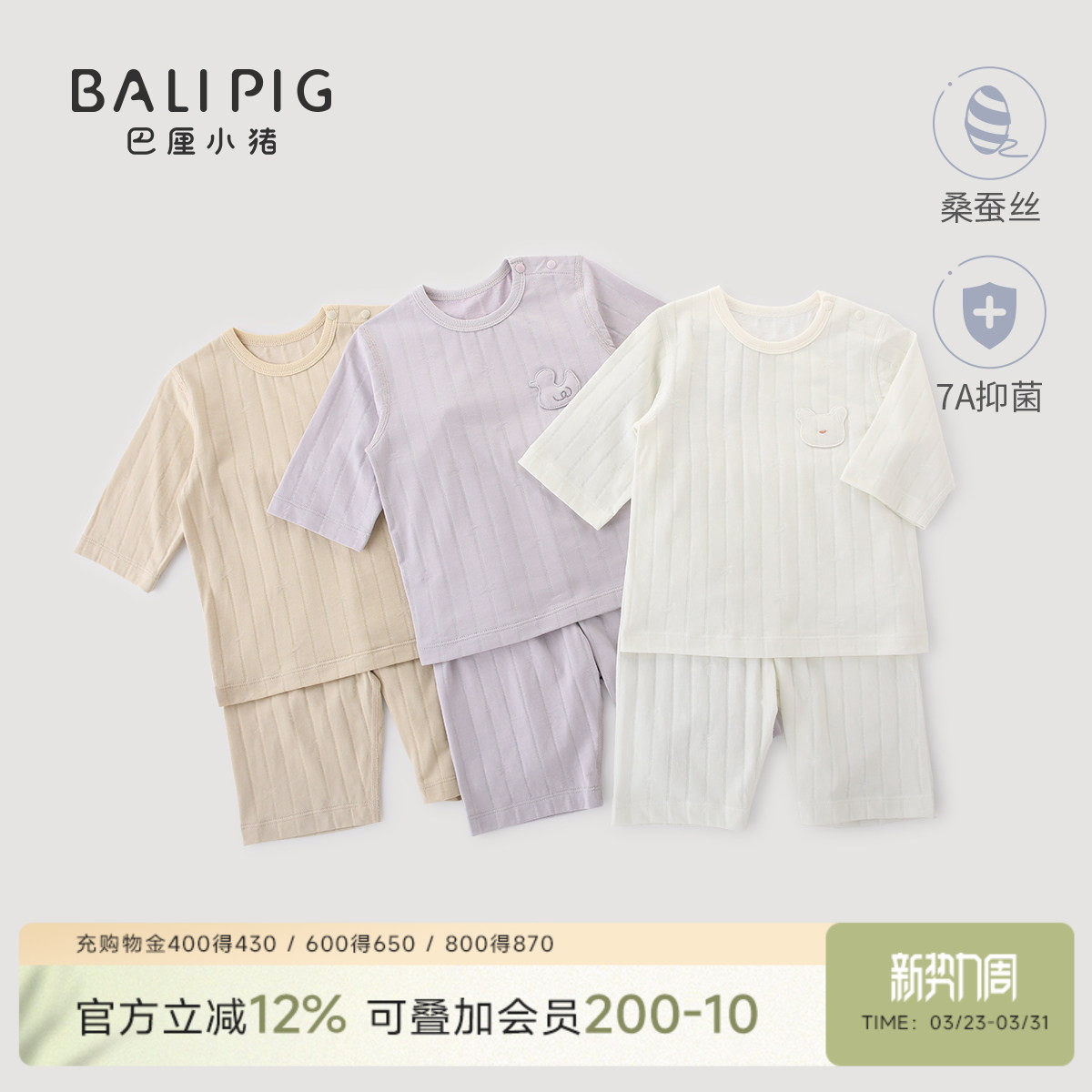 【桑蚕丝】宝宝家居服夏季长袖空调服男女童内衣套装春季宝宝睡衣