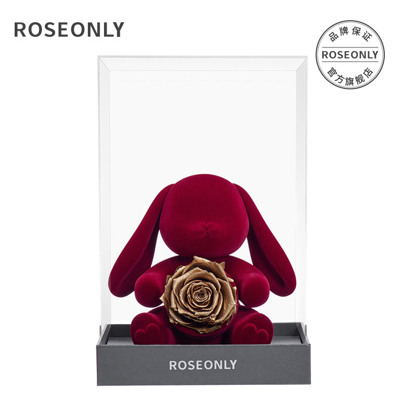 【情人节礼物】ROSEONLY诺誓钟情永生花玫瑰花兔熊送女友生日摆件