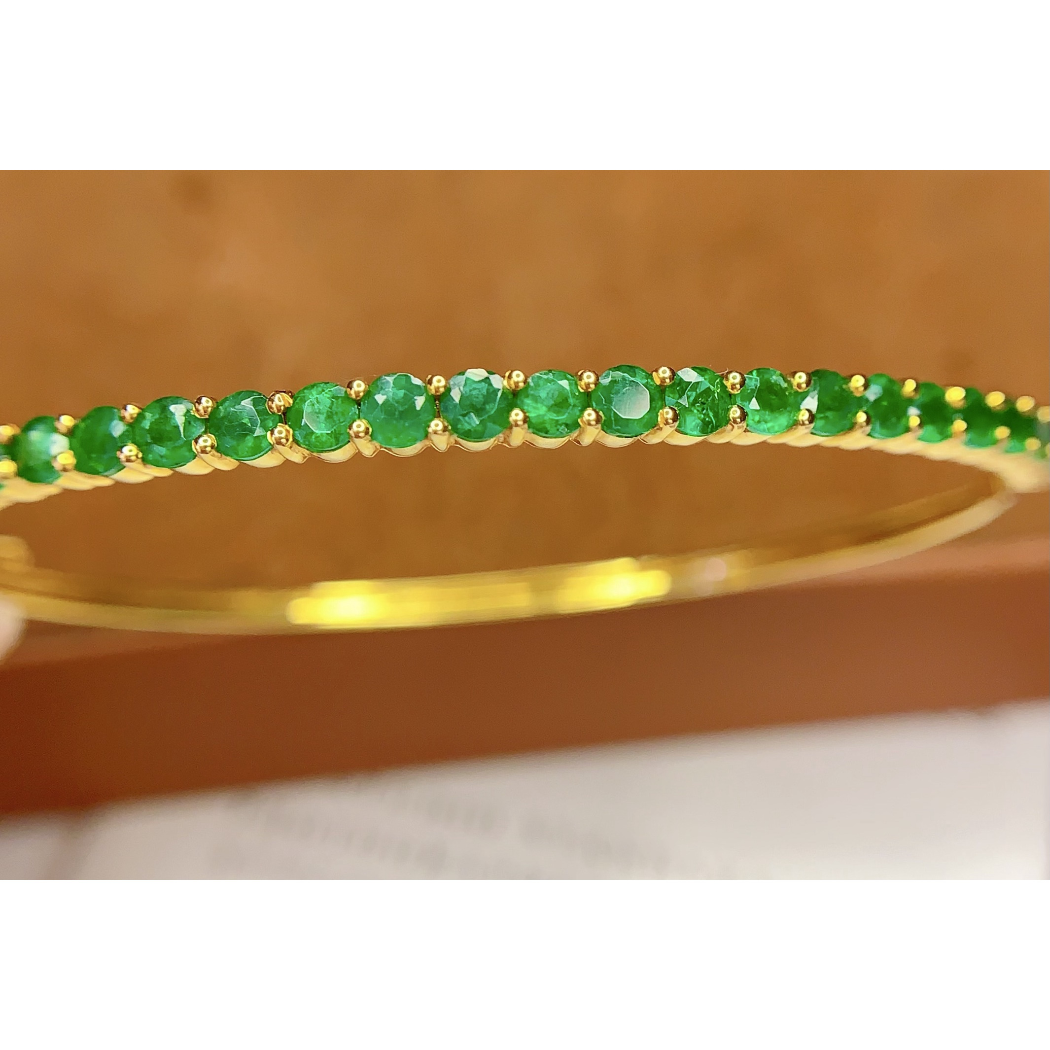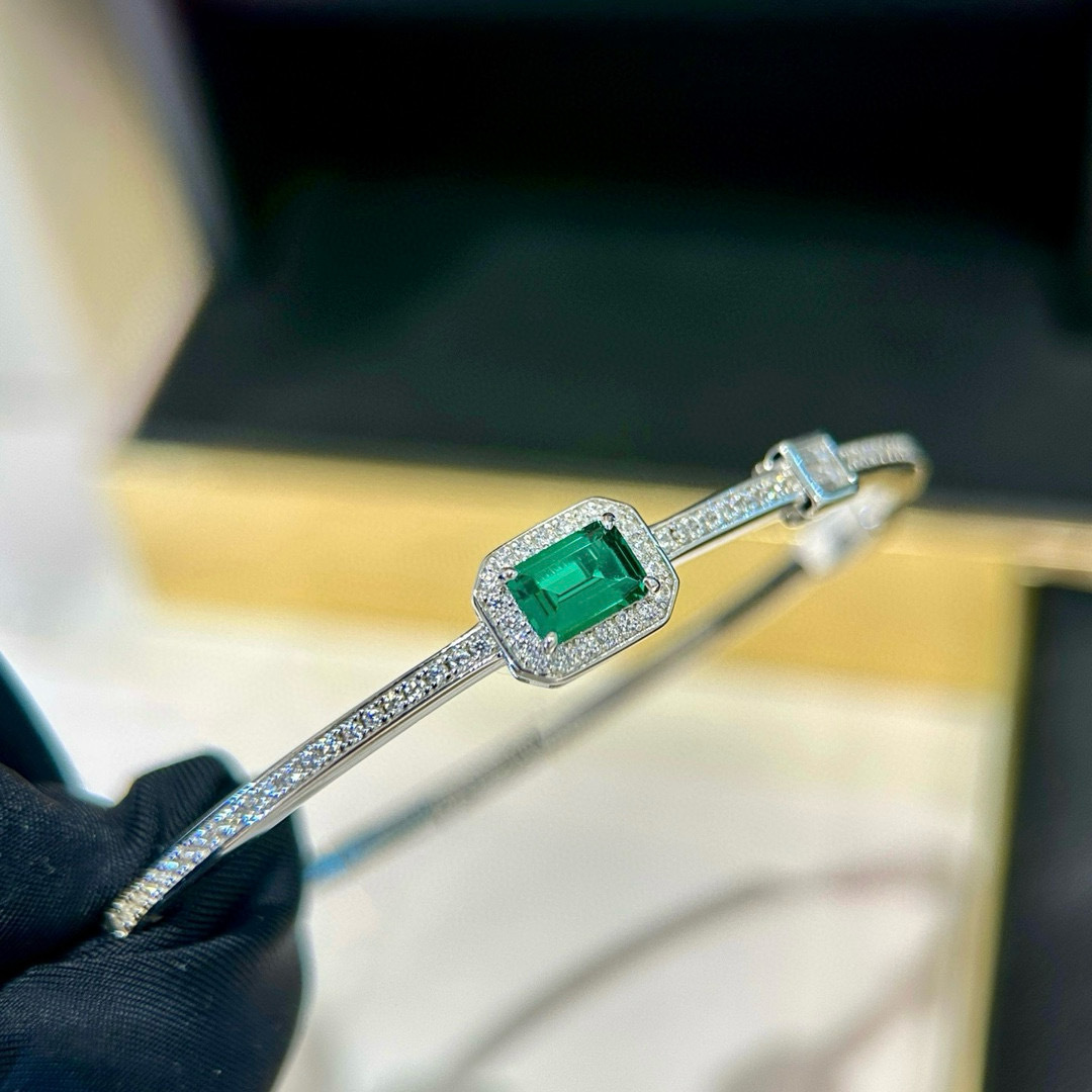 18K金钻石镶嵌 高品质赞比亚祖母绿手镯 主石1.13克拉 时髦复古