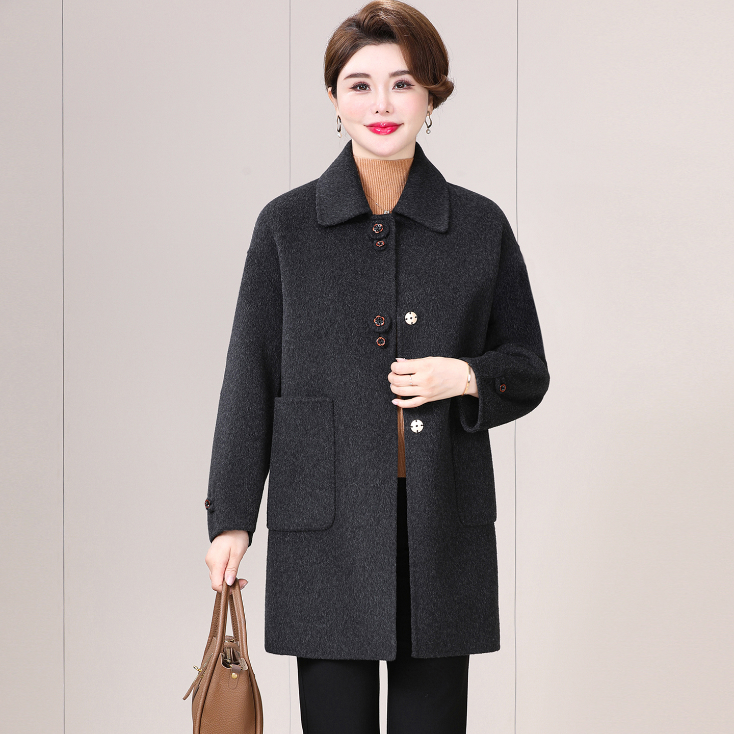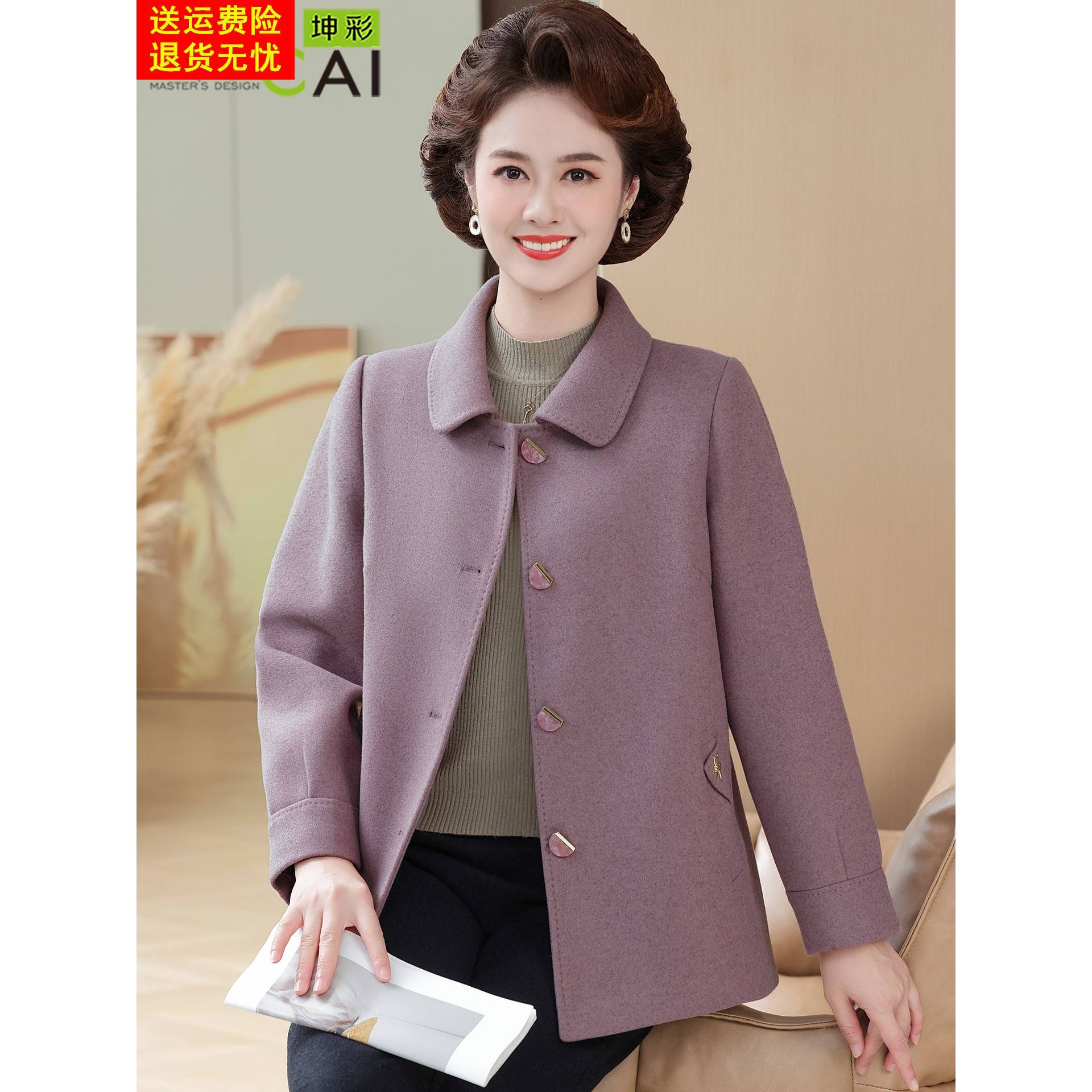 高贵妈妈秋冬装双面毛呢外套中老年女装春秋大码呢子大衣2025新款