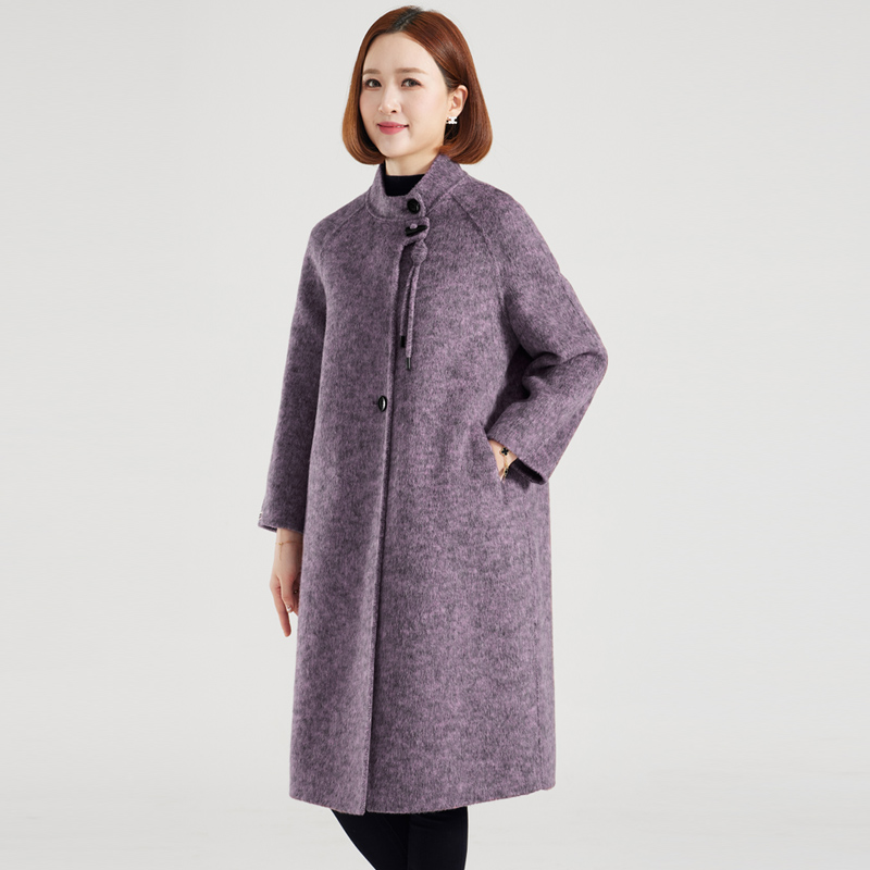 大码新中式毛呢子大衣双面羊绒女上衣秋冬套装中老年妈妈洋气外套
