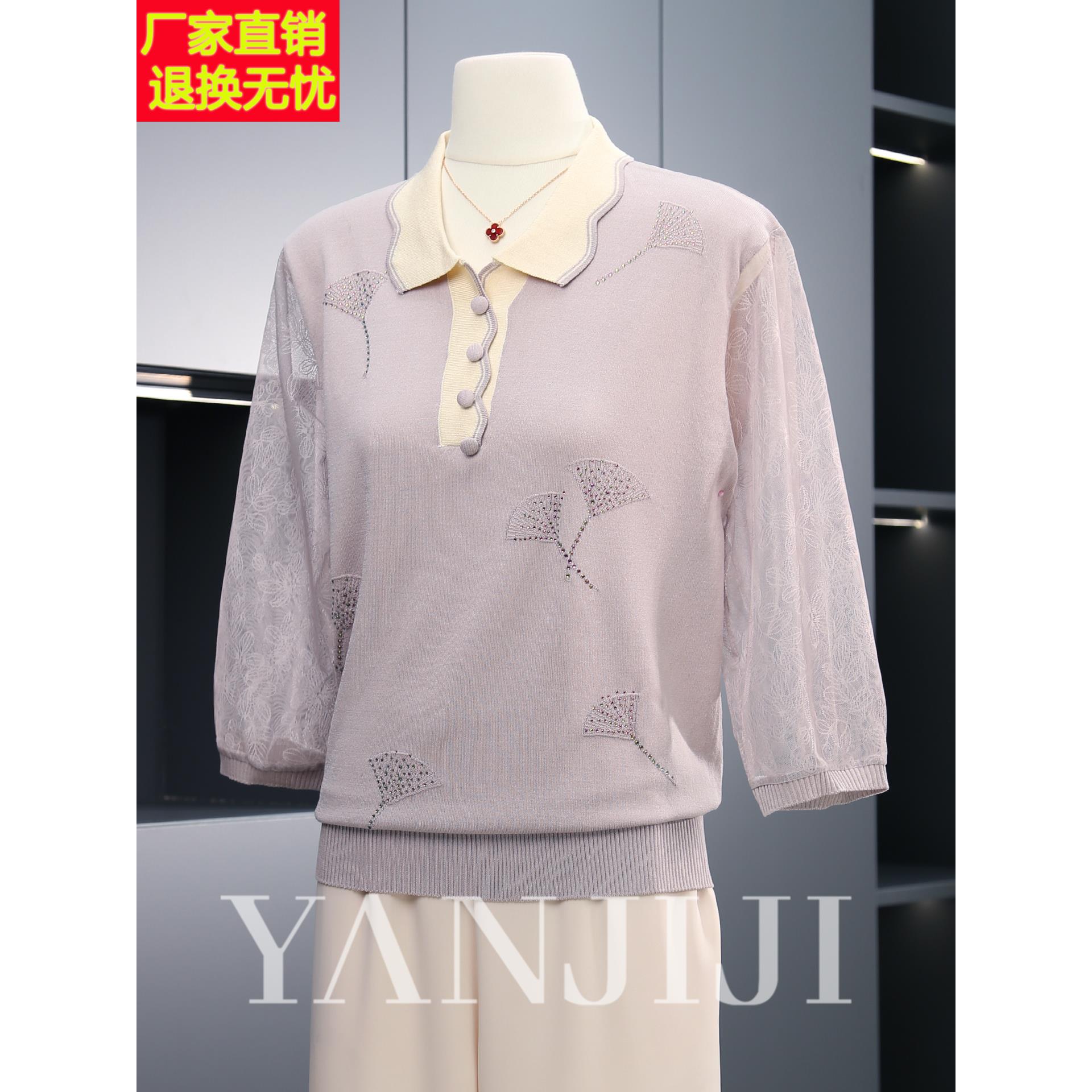 妈妈秋装时尚碎花T恤女薄长袖针织上衣洋气中老年女士初秋季小衫