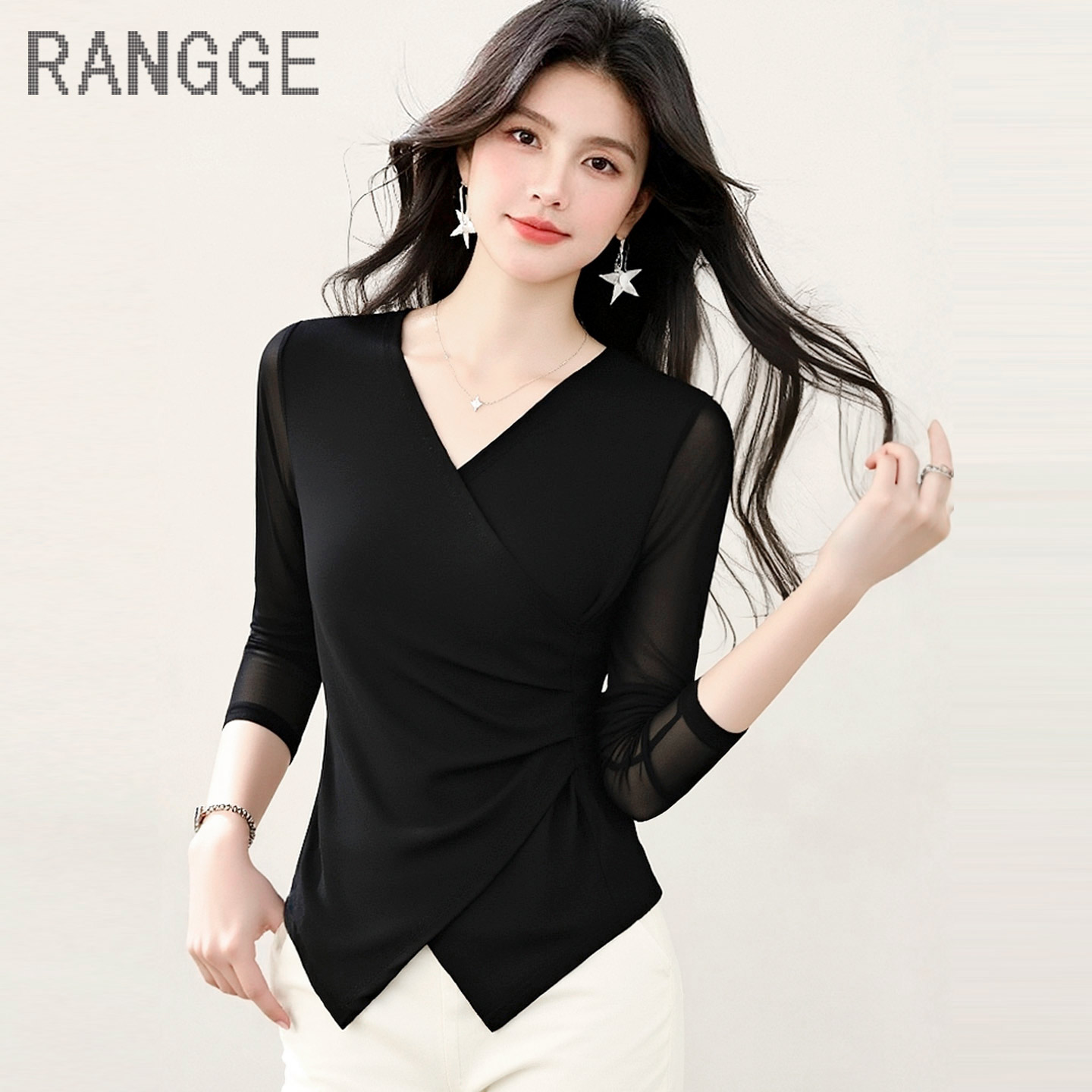 秋季小衫女2025新款长袖洋气打底衫韩版修身显瘦V领气质网纱上衣
