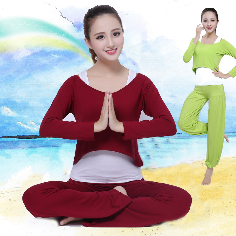 春秋新品莫代尔瑜伽服套装特价正品广场练功健身休闲服运动愈加服