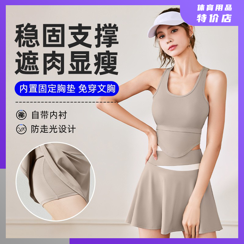 【特价】柏屋瑜伽服跑步健身运动搭配套装健身裤带裙摆115172005