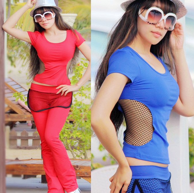 特价新款春夏女莫代尔短袖瑜伽服套装舞衣 舞蹈健身练功瑜伽上衣