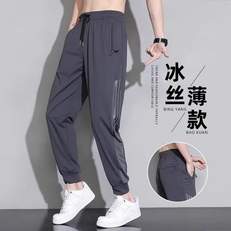 冰丝薄款潮牌束脚裤男士2024夏季新款宽松速干运动长裤子男士百搭