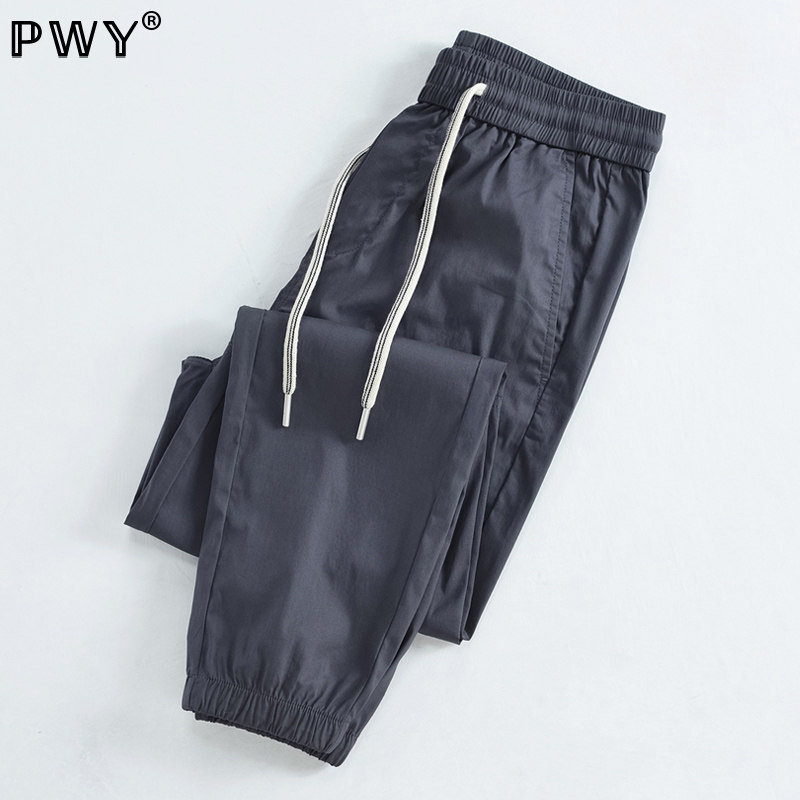 潮牌束脚裤男士夏季2025新款纯色松紧腰系带休闲裤潮流运动九分裤