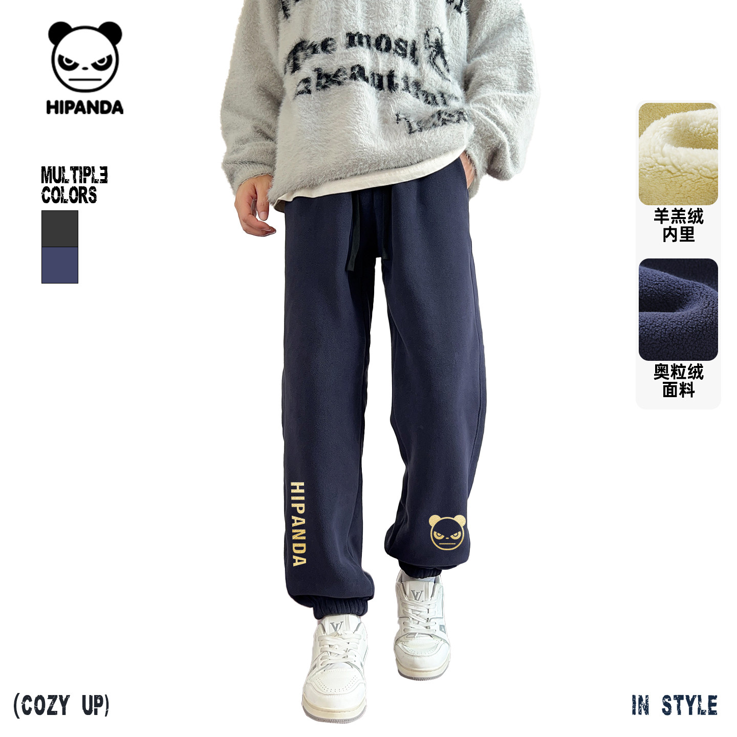 Hipanda你好熊猫560g奥粒绒潮牌男束脚裤2025冬季新款羊羔绒长裤C