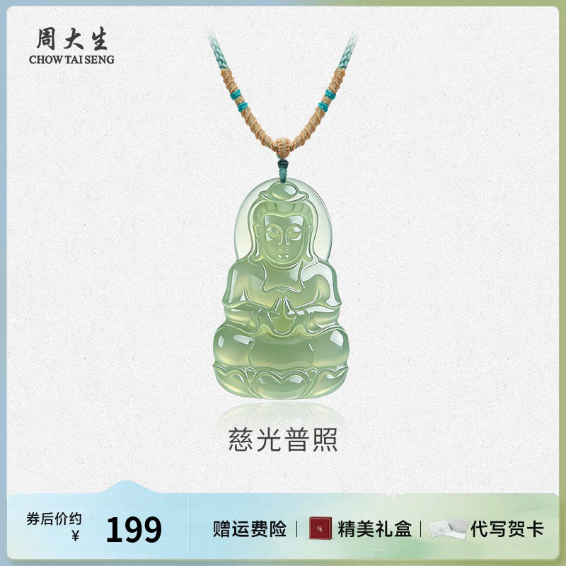 周大生和田玉本命佛吊坠男女八大守护神观音玉坠新年礼物送男朋友