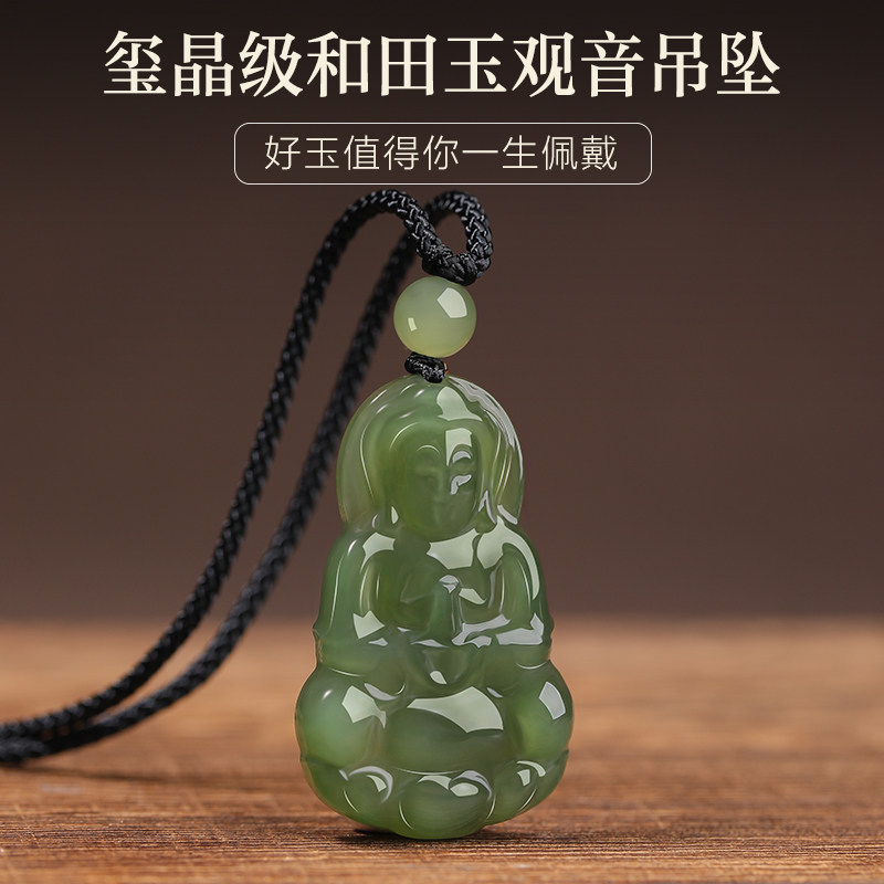 和田玉观音玉坠真品新疆青玉男士观音菩萨项链玉石玉挂件玉佩带证