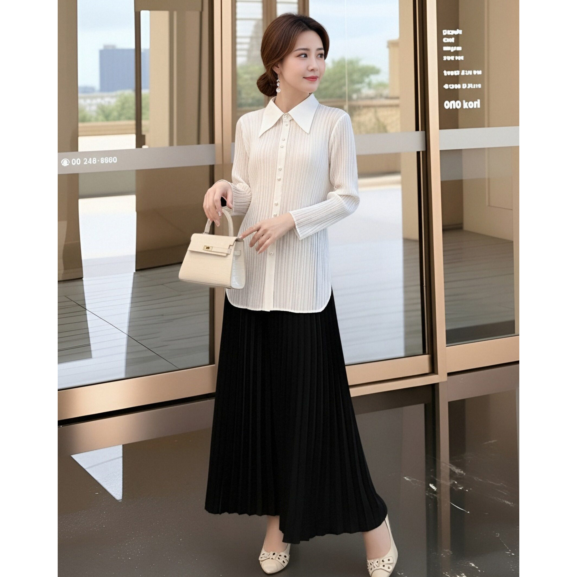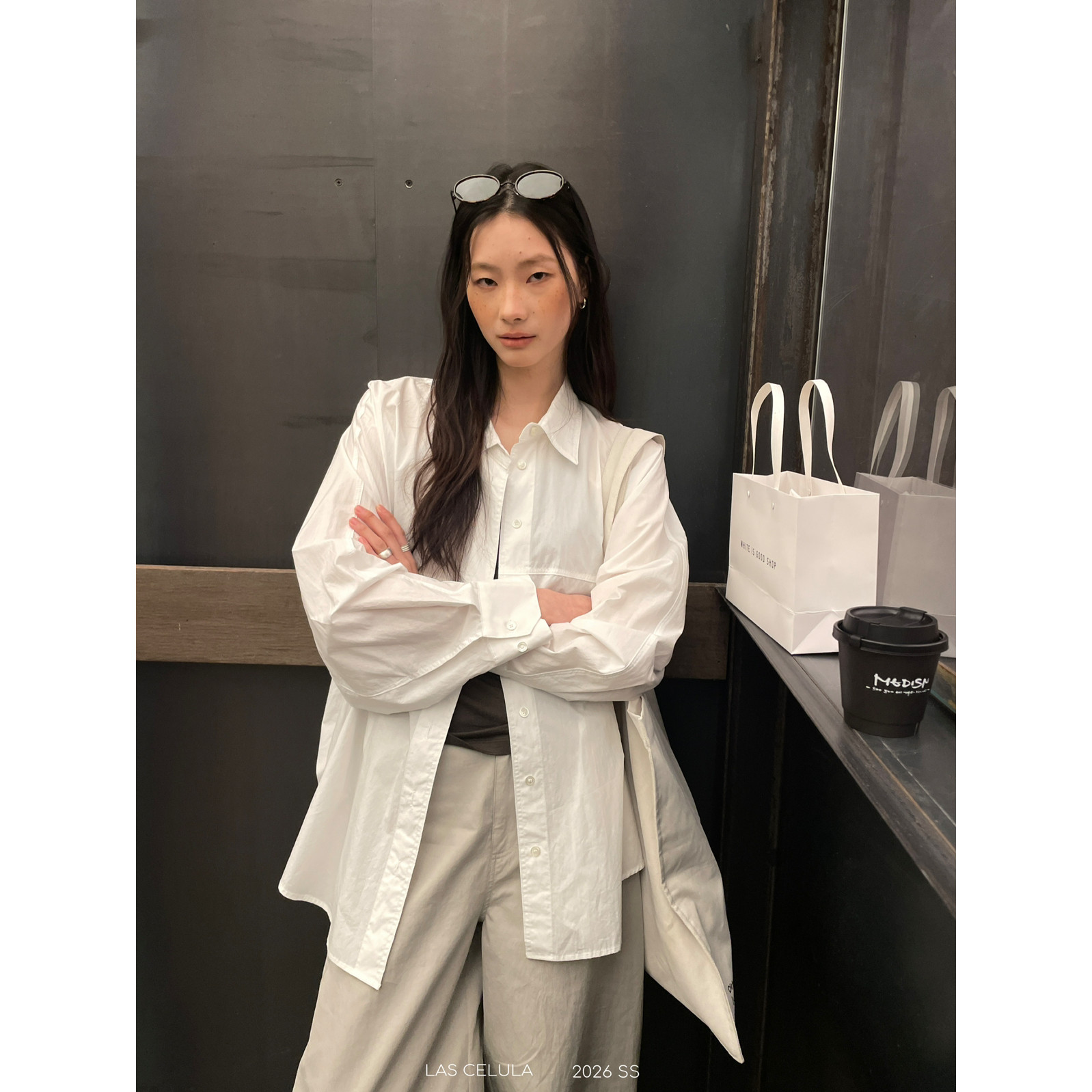 初影 白衬衫女长袖中长款宽松上衣2025秋装新款简约精致通勤衬衣