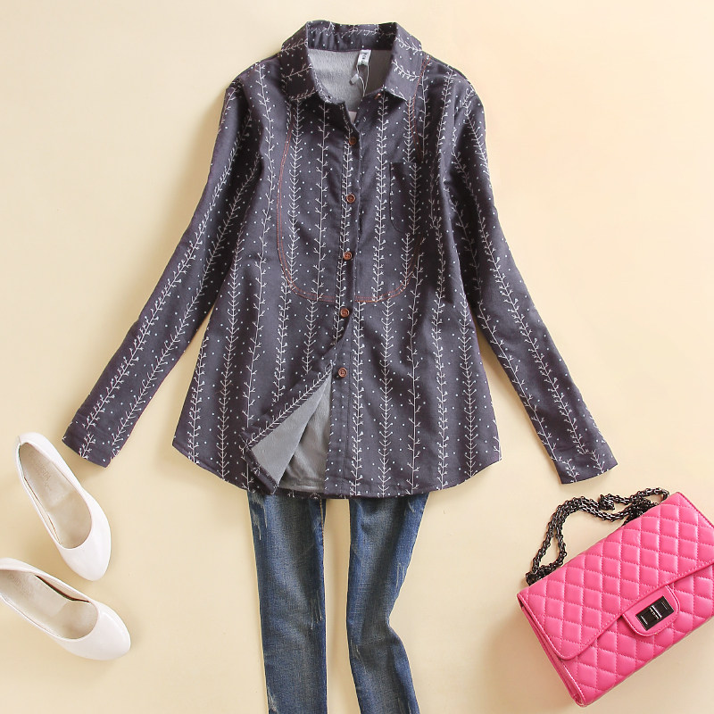 初影灯芯绒加厚衬衫女长袖2026春装装新款中长款上衣紫色纯棉衬衣