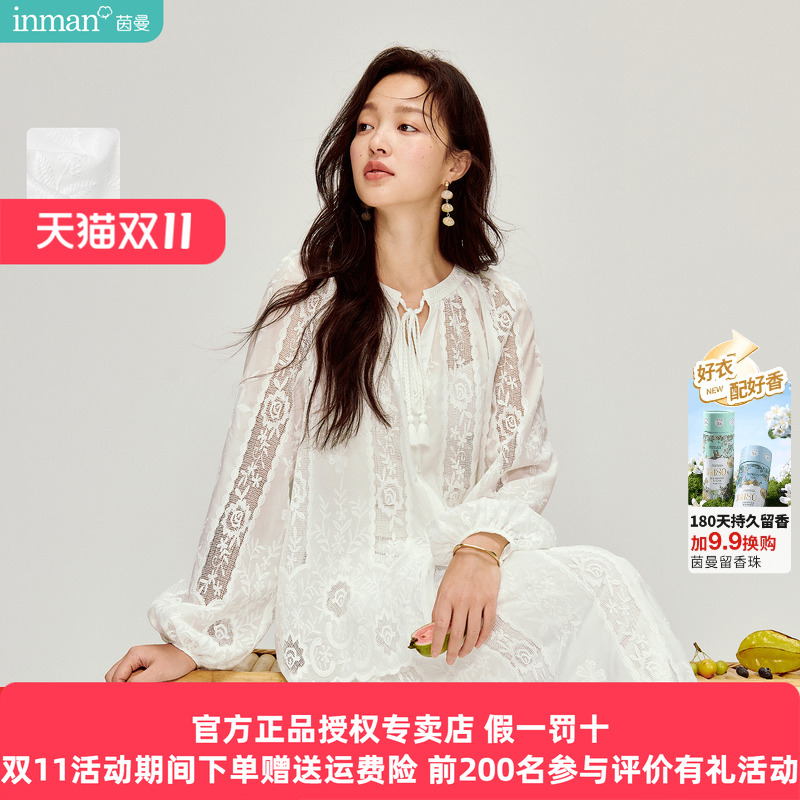 茵曼法式复古刺绣蕾丝衬衫2026春季女装新款温柔风长袖衬衣上衣