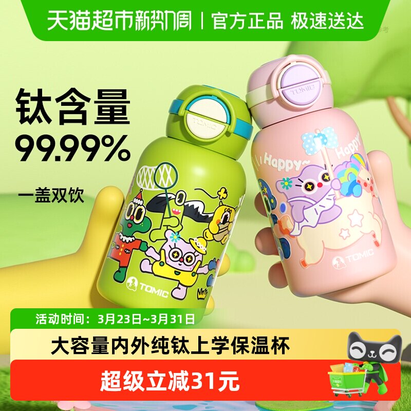 特美刻儿童高颜值可爱女生水杯家用吸管钛杯大容量水壶纯钛保温杯