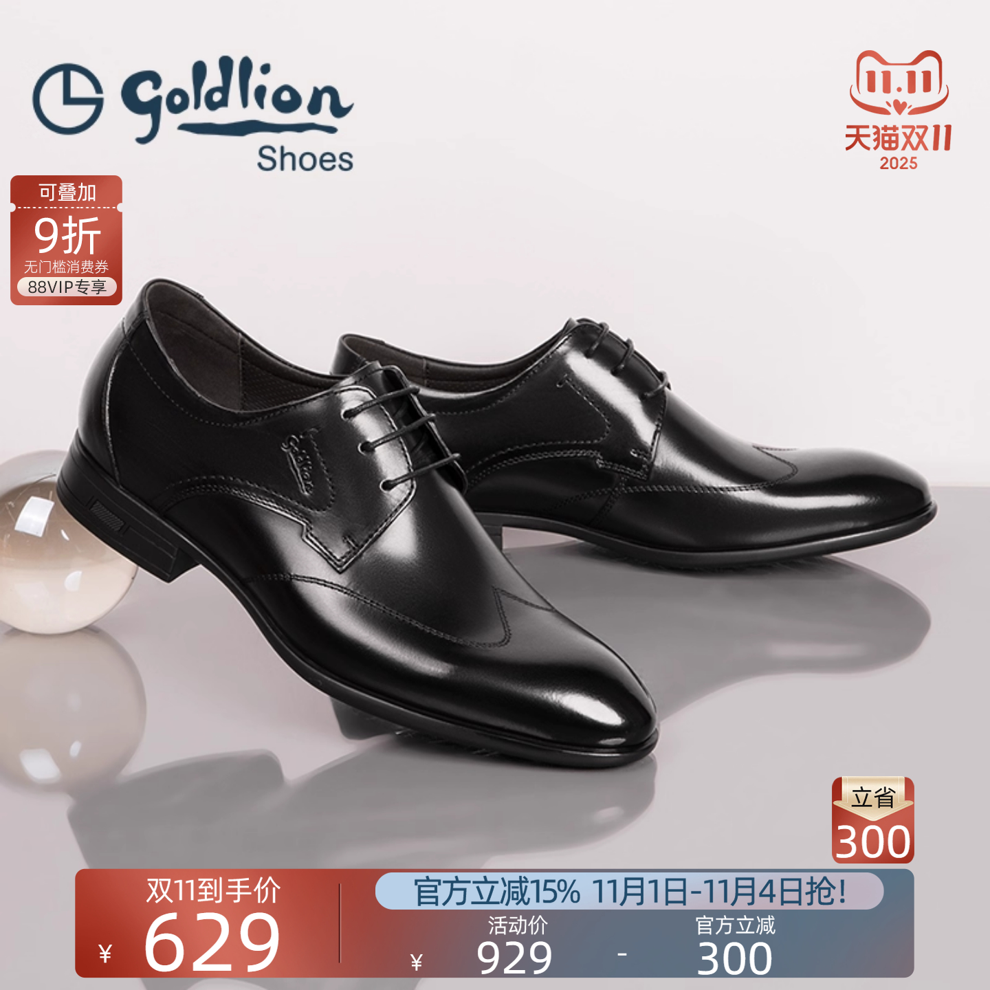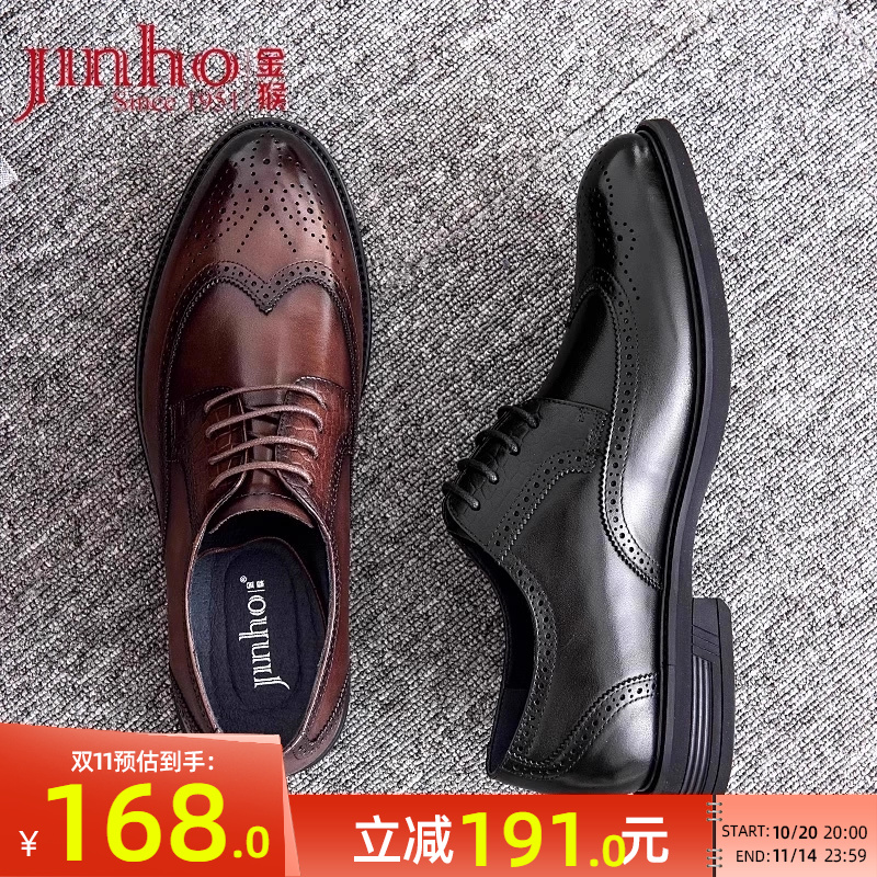 金猴男鞋春季商务正装皮鞋牛皮英伦系带真皮雕花布洛克结婚德比鞋
