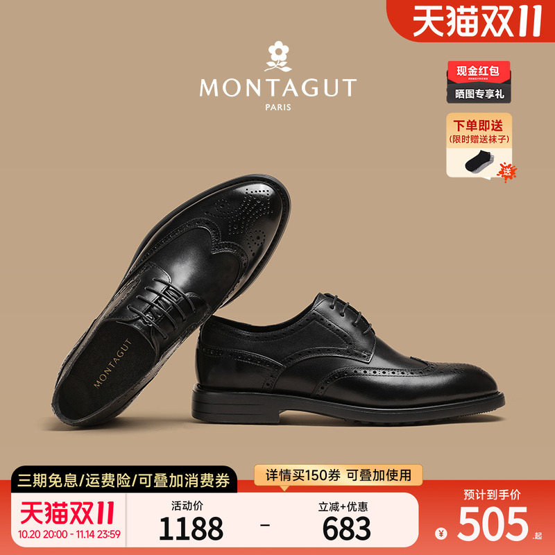 梦特娇牛津皮鞋男秋冬英伦头层牛皮正装鞋高级雕花布洛克德比鞋男