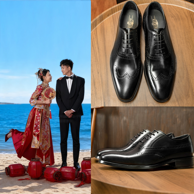 百思图25春新款英伦布洛克雕花商务正装皮鞋男新郎结婚鞋30269AM5