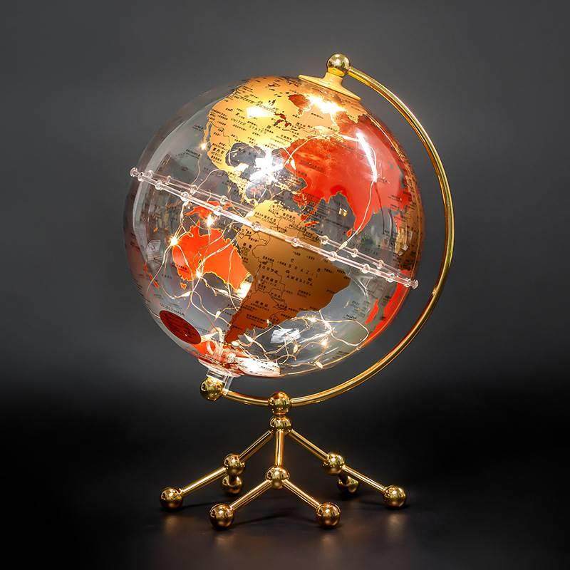 透明地球仪摆件轻奢高档高级感客厅玄关酒柜柜子桌面摆设卧室可发光小夜灯台灯家居装饰品男孩女孩生日礼物