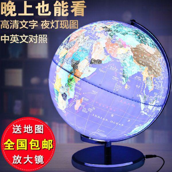 会发光的地球仪台灯中号学生用25cm高清美式复古仿古摆件带LED灯