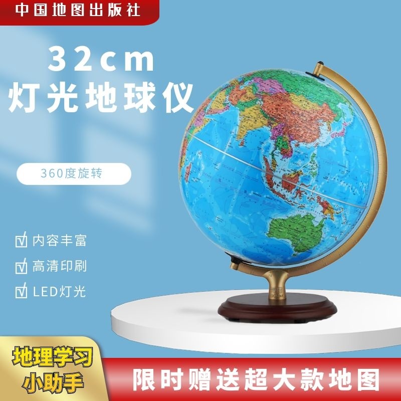 中图社博目32cm高清地球仪中学生 地球仪台灯书房办公室摆件带