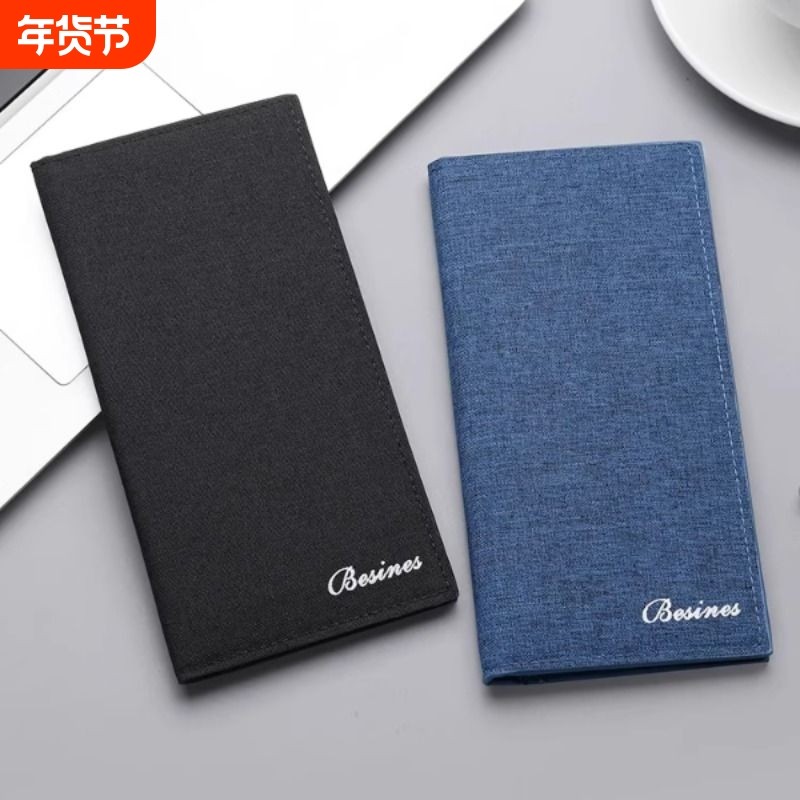 男士长款钱包超薄学生青年帆布皮夹年轻人多卡位男生钱包卡包一体