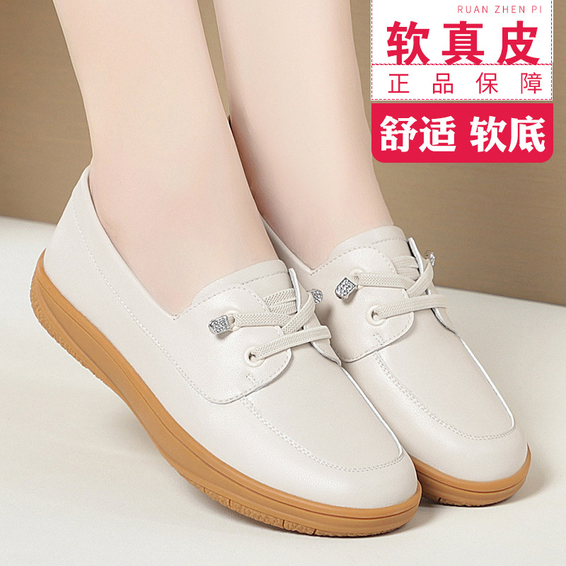 春秋季新款真皮小皮鞋女低跟平底学生休闲单鞋韩版防滑超软鞋子女